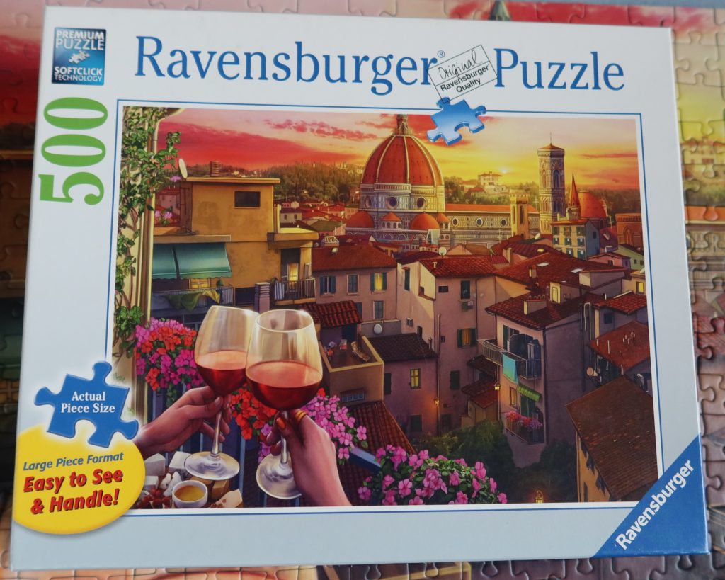 Legpuzzel Ravensburger – 500 stukjes – Wijn drinken op het terras – Grote stukjes
