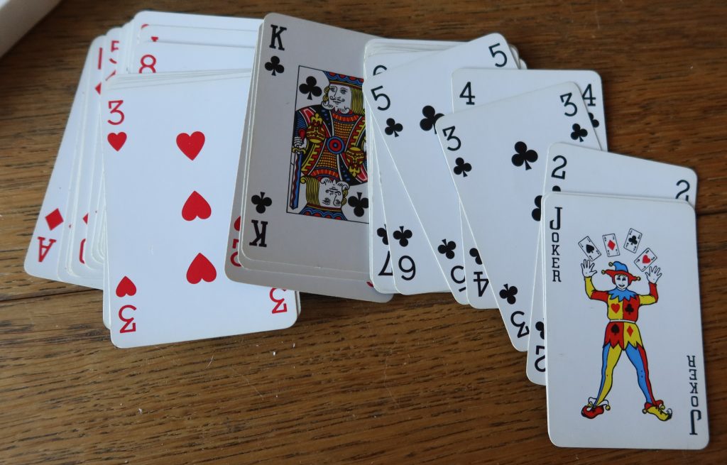 Bij 1 stok zitten de kaarten nog in de folie en bij 1 stok zitten geen jokers