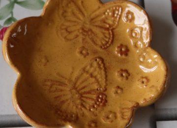 Pottenbakken – Licht okergeel bloemvormig schaaltje