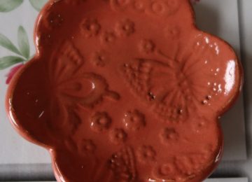 Pottenbakken – Roestkleurig bloemvormig schaaltje