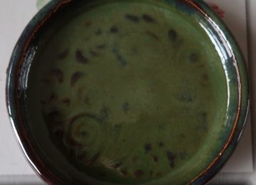 Pottenbakken – Donker mosgroen met roodbruin rond schaaltje