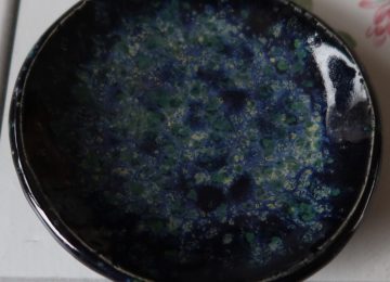Pottenbakken – Donker zwartblauw, mooi gemarmerd met lichtere tinten rond schaaltje
