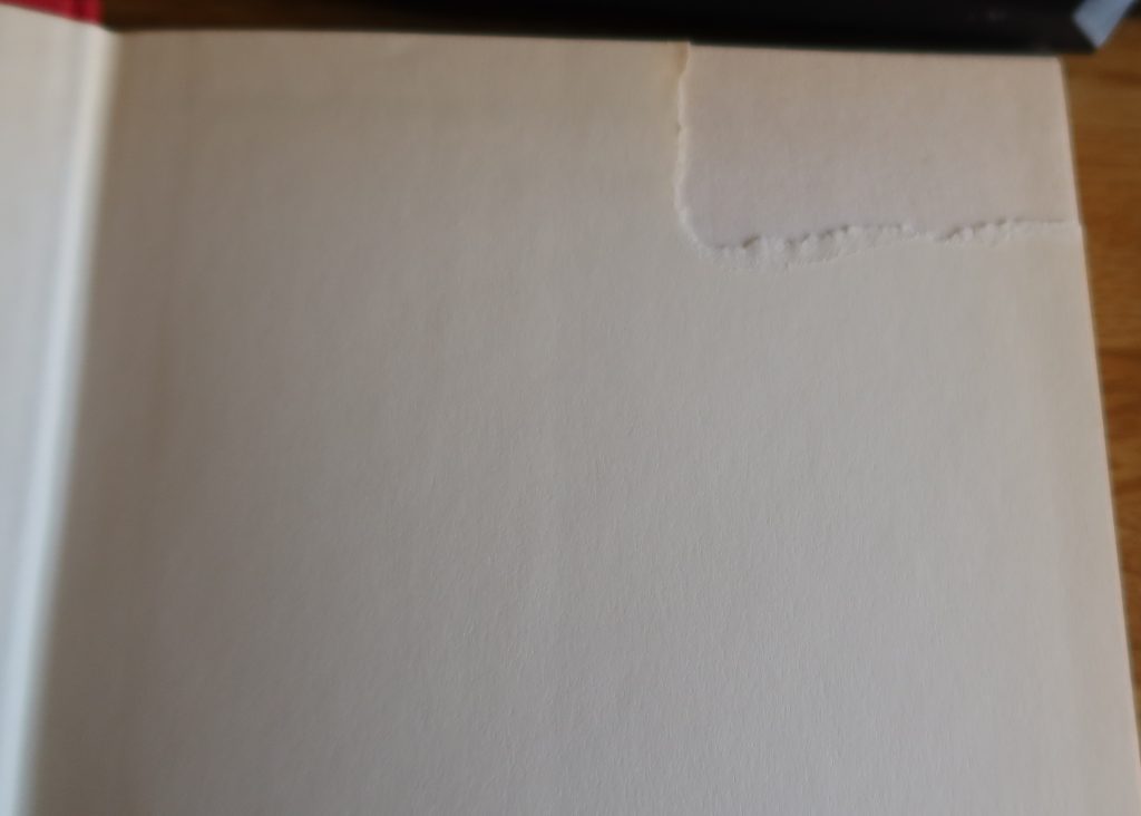 Uit het schutblad is bovenin een hoekje uitgescheurd – zie foto