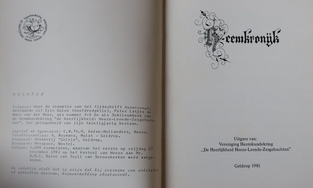 Uitgave : Vereniging Heemkundekring ,De Heerlijkheid Heeze-Leende-Zesgehuchten