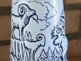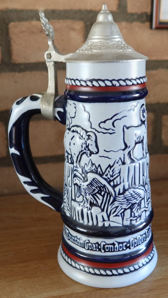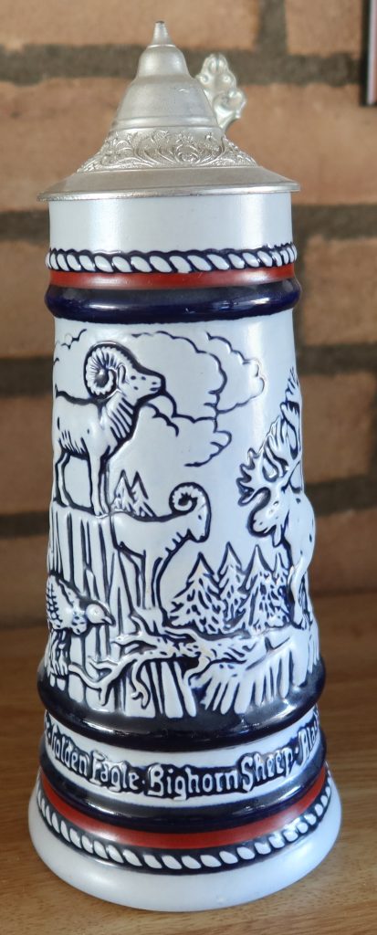 De bierpul toont de rotsgeit, de valk, de eland van Alaska, het dikhoornschaap, de condor en de steenarend.