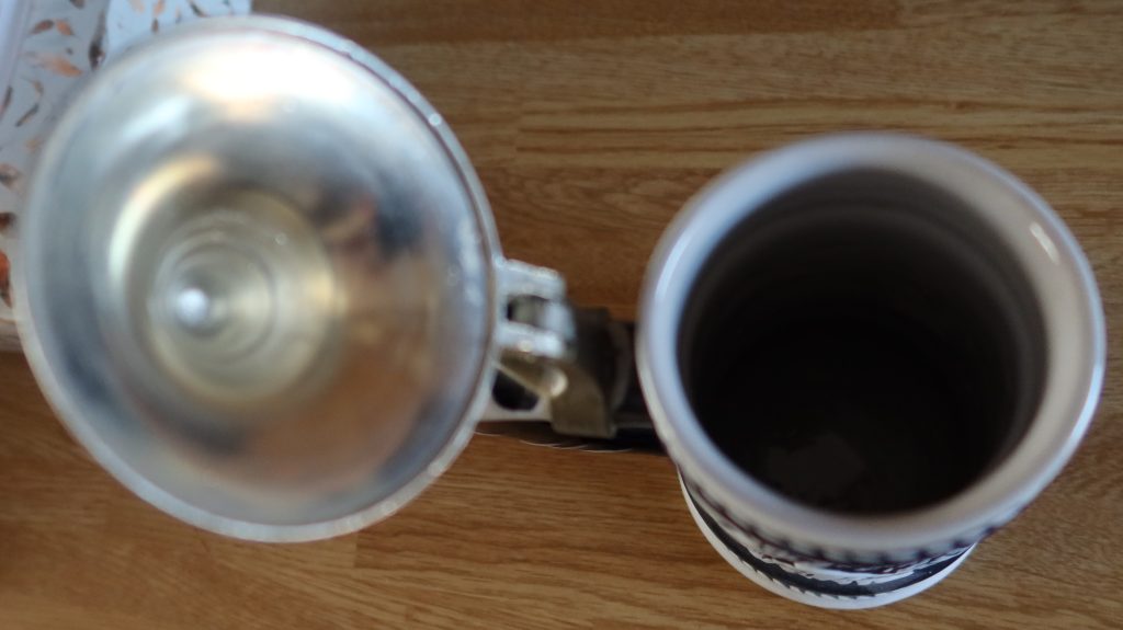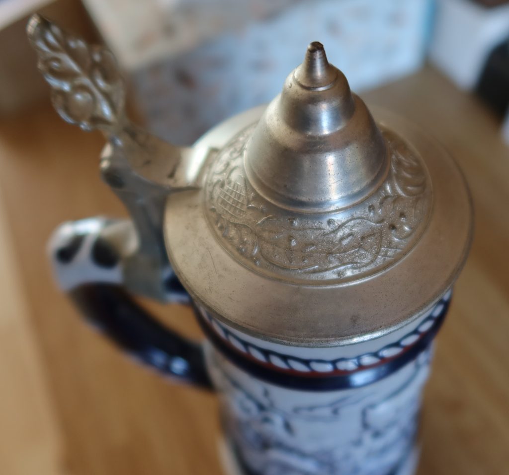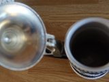 Vintage 1976 Avon-bierpul met tinnen deksel in zeer goede staat.